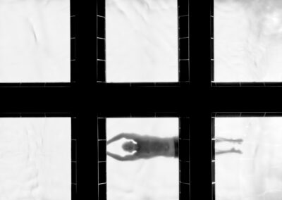… wusste natürlich nicht, dass ich 15 Meter unter ihm durch den Glasboden des Schwimmbads fotografierte. Kein Haar ist auf der blanken Brust zu sehen.